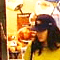 その瞬間にくす玉が…。って、あれれ?ヒモが抜けただけで、開かないや。みんなのあたたかい笑いのなか、Aplleポロシャツさんが両手でくす玉をこじ開け、無事『祝iMac発売開始』の垂れ幕があらわれた。最後まで笑わせてくれるやないの。かくして神戸では、たぶん日本で一番遅くiMacが発売開始されたのだった。